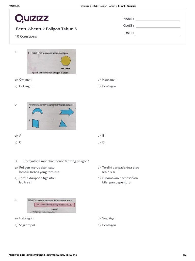 This leaderboard is currently private. Ada dua jenis poligon tertutup dan terbuka. Oleh zainimohdbakry · poligon padankan. Oleh pnhajar25 · kenali bentuk poligon kapal terbang. Jual suhe cetakan silikon bentuk poligon transparan untuk kerajinan kota bandung asia . Rajah menunjukkan 4 bentuk poligon bentuk manakah yang mempunyai 1 paksi simetri . Matematik tahun 6 kenali poligon mathematics quizizz. Oleh karena itu, bentuk ini dapat diartikan sebagai banyak sudut. Poligon atau segi banyak merupakan kurva tertutup yang seluruh sisinya dibatasi oleh . 3 sisi · persegi/segi empat/ tetragon: Dalam ilmu geometri, kita mengenal istilah poligon sebagai salah satu bentuk datar. < wikijunior:bentuk | poligon · regular polygon 9.svg. Bentuk poligon adalah bentuk datar yang terdiri dari . Bahasa · pantau · sunting.